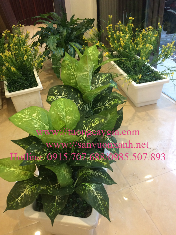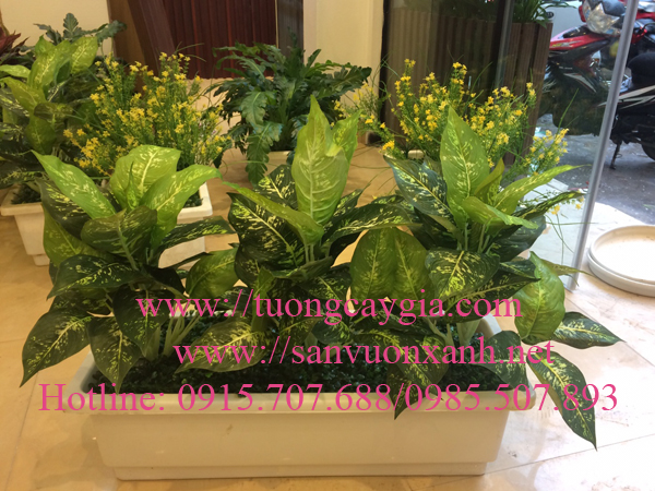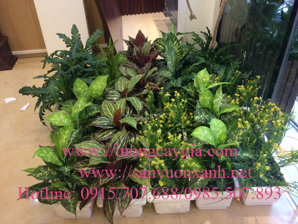 Màu xanh mướt của chậu cây giả