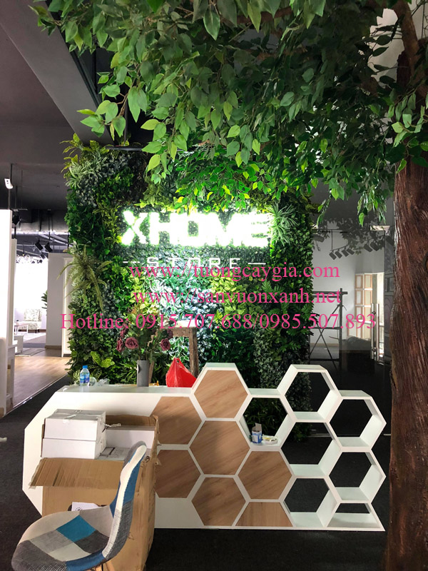 Các phòng ban trong công ty thường được ngăn cách bằng những bức vách ngăn buồn tẻ, tạo cảm giác bí bách, căng thẳng hơn cho nhân viên. Bạn hoàn toàn có thể làm mới lại không gian, và thổi vào đó một luồng sức sống mới, tươi trẻ và năng động bằng những bức tường cây giả, sử dụng những cây giả ốp tường gắn kết lại với nhau tạo nên một bức tường ngăn bằng cây xanh thay thế cho vách ngăn buồn tẻ ban đầu.