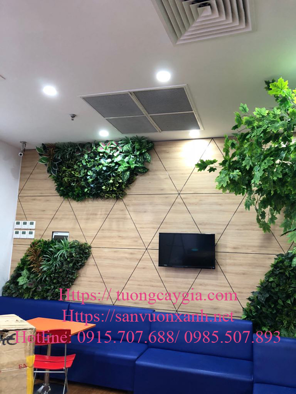 Trang trí văn phòng làm việc với cây giả ốp tường là ý tưởng không hề tồi phải không ạ.