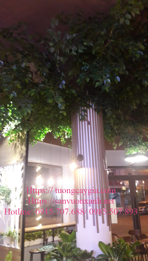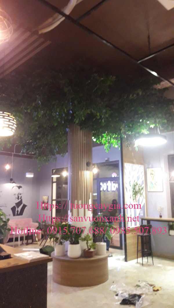 Chỉ trong 6h đồng hồ chúng tôi đã thi công hoàn thiện cây si cành lá vươn 2m tỏa đều, thân cây cao 4m làm bằng trụ cột tòa nhà, biến trụ cột trở thành thân cây cổ thụ