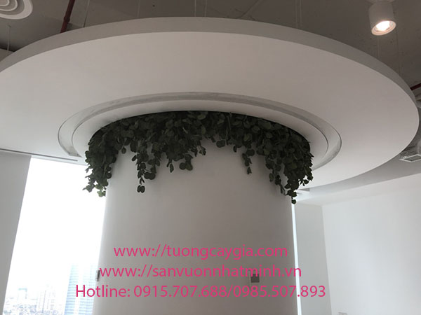 Những chiếc cột trắng to đứng thừng thững giữa không gian văn phòng rộng lớn, chúng ta có thể trang trí những đầu cột bằng dây lá xanh rủ tạo nên sự mềm mại cho cột cũng như tạo thêm không gian thiên nhiên cho văn phòng.