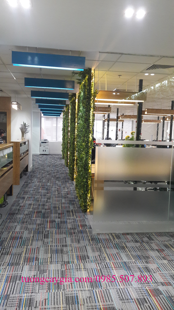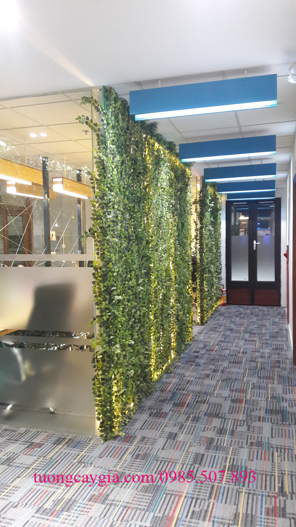 Tường bám dây leo thằn lằn điểm nhấn trang trí cho những vách kính trắng đơn điệu. Trước đây kính thường được dán giấy mờ nhằm che đi phần nào điểm trong suốt, tuy nhiên gần đây dây leo giả được nhiều văn phòng công ty lựa chọn trang trí chẳng hạn tầng 2 văn phòng Công ty số 82 Duy Tân, Cầu Giấy, Hà Nội