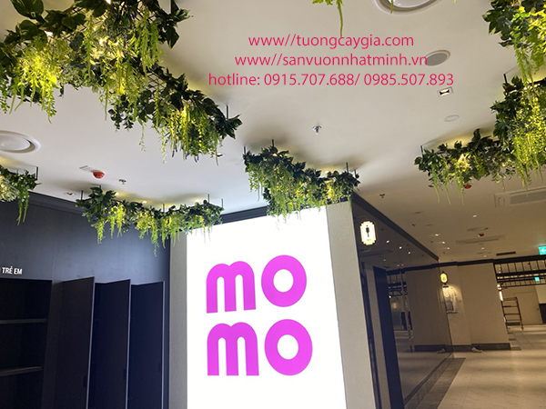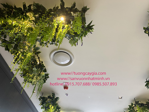 Những chùm dây rủ nhân tạo xinh xắn được kết nối míc các loại lá, dây leo với nhau. Là một đơn vị thi công vách tường cây, vách tường cỏ, dây leo trang trí, chúng tôi đã kiến tạo hàng ngàn công trình về decor cây hoa lá với nhiều kiểu dáng hoa lá khác nhau. Hãy ngắm nhìn những khóm cây bò leo trên trần tại tầng 4 Trung tâm thương mại Lotte Mall Tây Hồ - Hà Nội
