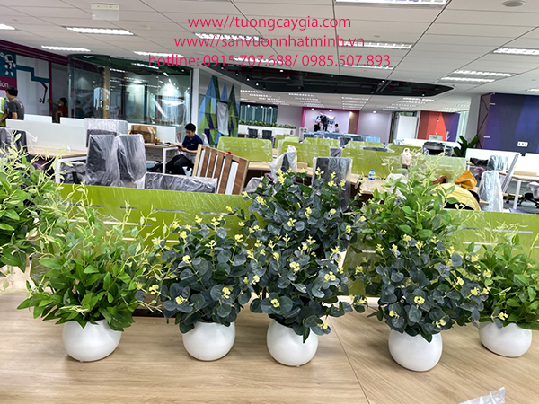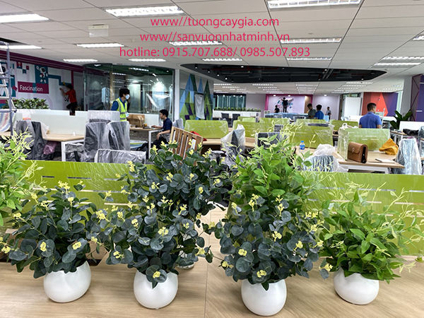 Vì sử dụng điều hoà nên Công ty đã dùng toàn bộ cây xanh nhân tạo