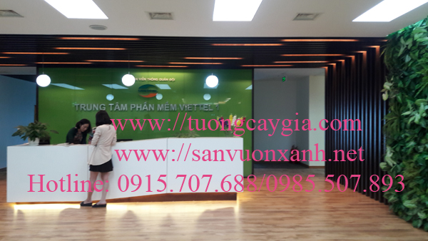 Tạo điểm nhấn cho bức tường bằng những chậu cây hoa, lá đủ sắc màu tại văn phòng Tập đoàn viễn thông quân đội Viettel - tầng 41 dự án Keangnam đường Phạm Hùng, Hà Nội.