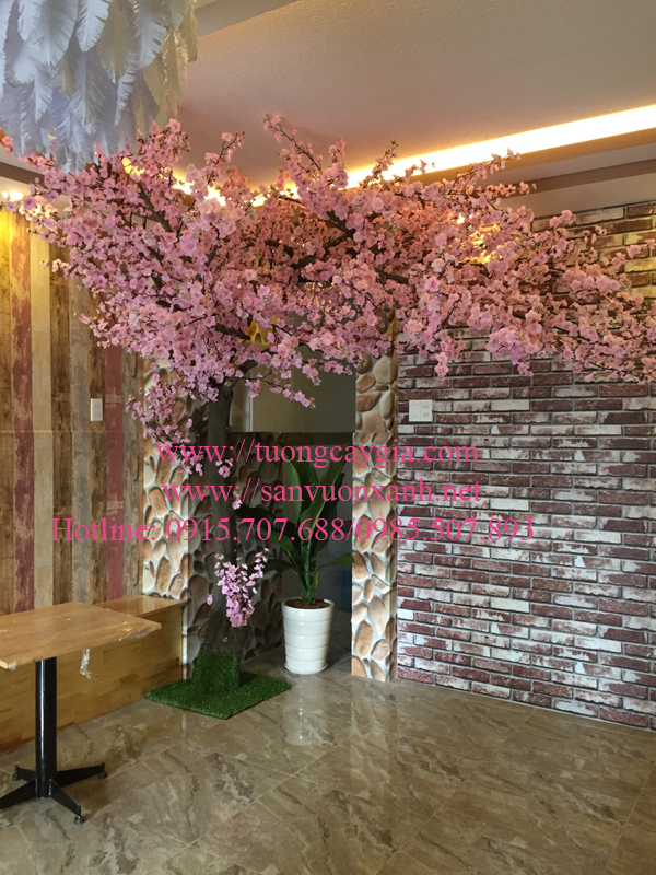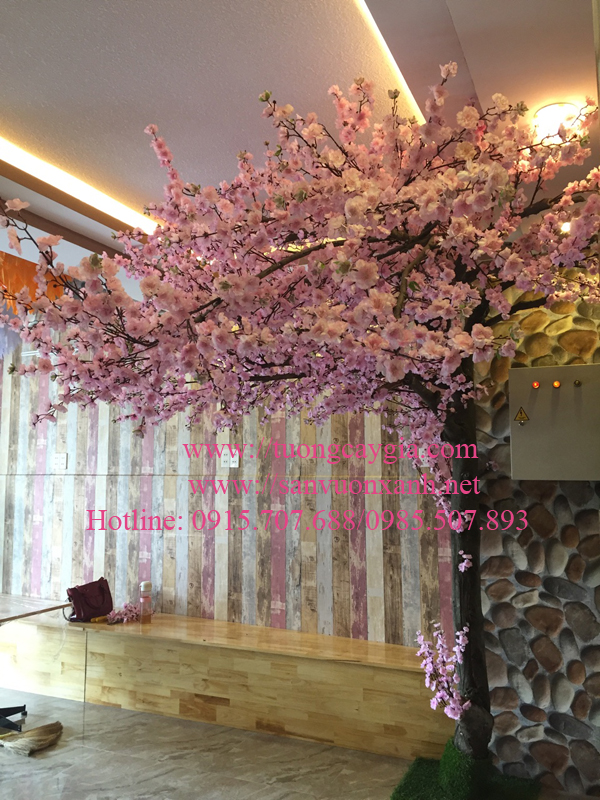 Hoa anh đào phấn hồng được hoàn thành trong 5h đồng hồ, với dáng cây mềm mại, cành đổ về một phía bông hoa khoe sắc phấn hồng, kết hợp ánh đèn càng tạo nên không gian thêm thơ mộng, lỗng lẫy