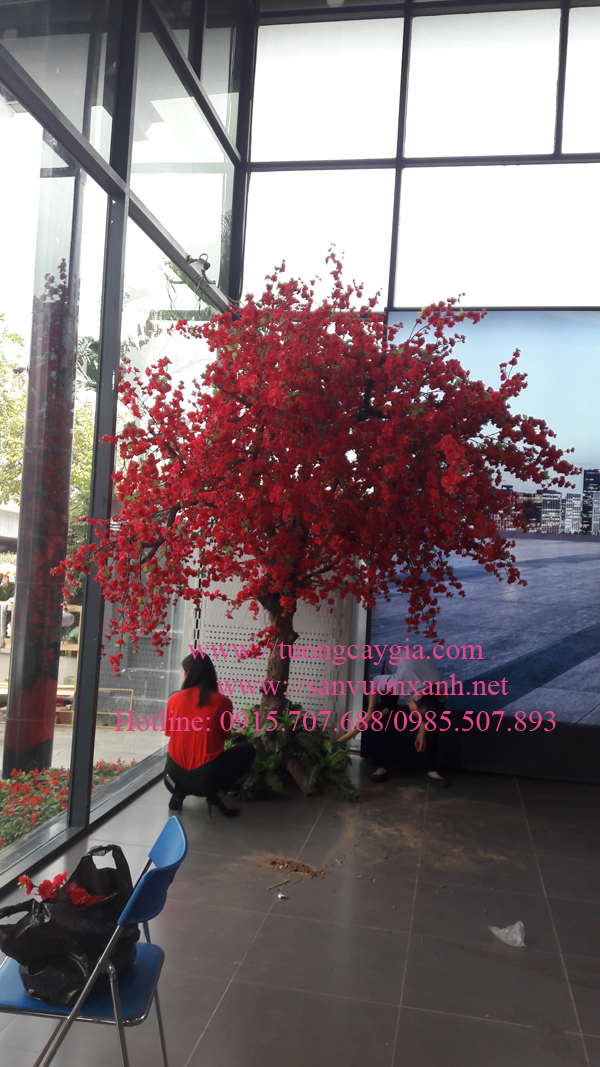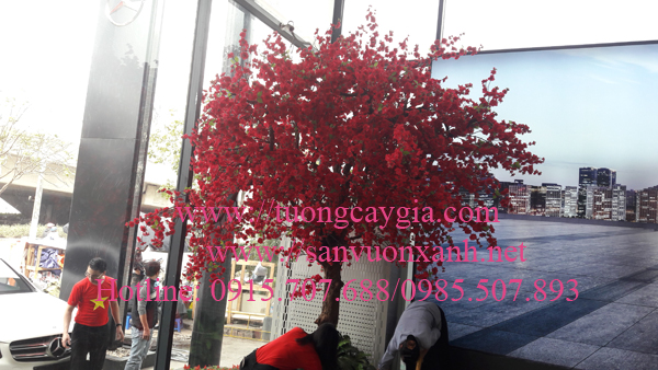 Hoa anh đào tại showroom trưng bày ô tô Mercedes đường Phạm Hùng - Hà Nội. Màu đỏ thẫm của hoa đã báo hiệu xuân sang, vạn vật đâm chồi nảy lộc, muôn hoa khoe sắc.