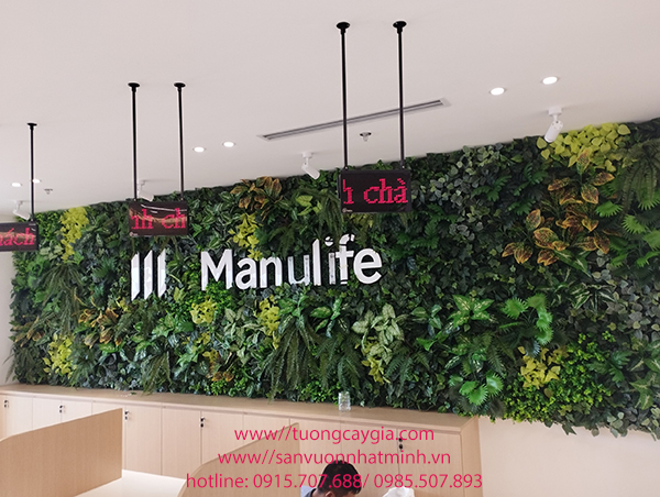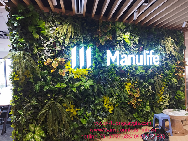 Chúng tôi là nhà thầu chuyên thi công các hệ thống mảng cây xanh nhân tạo, bởi vậy hàng năm luôn nhận được các công trình quy mô lớn về cây hoa lá. Manulife đã cho chúng tôi được trải nghiệm nhiều gói thầu cây xanh trước đây là chúng tôi hoàn thiện các vách tường cây cho các tầng tại toà nhà chính của Công ty có trụ sở tại quận, tp Hồ Chí Minh, phía bắc có hội sở chính là số 29 Nguyễn ĐÌnh Chiểu, Hai Bà Trưng, Tp Hà Nội. Và giờ đây mở rộng thêm trụ sở tại tầng 6, tầng 7 toà nhà số 1152 đường Láng, Cầu Giấy, Tp Hà Nội
