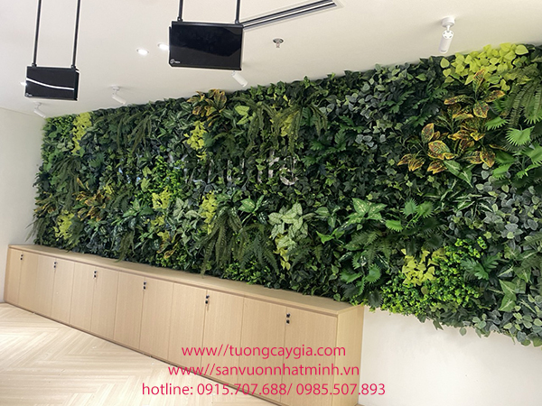 Những năm gần đây khi thiết kế, cải tạo lại văn phòng công ty, nhà hàng, quán ăn, trung tâm thương mại, hay căn hộ thì hầu như kiến trúc sư đều thiết kế tạo một vách tường cây hay những chậu cây hoa lá trang trí thêm cho không gian văn phòng, nhà hàng luôn xanh mát nhằm giảm bớt sự khô cứng, đơn điệu màu trắng của bức tường. Để sản phẩm tốt nhất, giá thành rẻ nhất quý khách hãy liên hệ với chúng toi theo thông tin su.