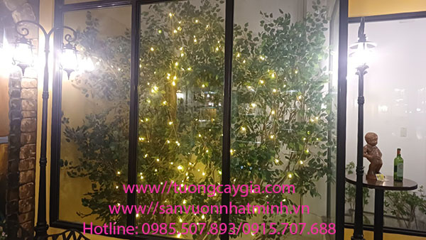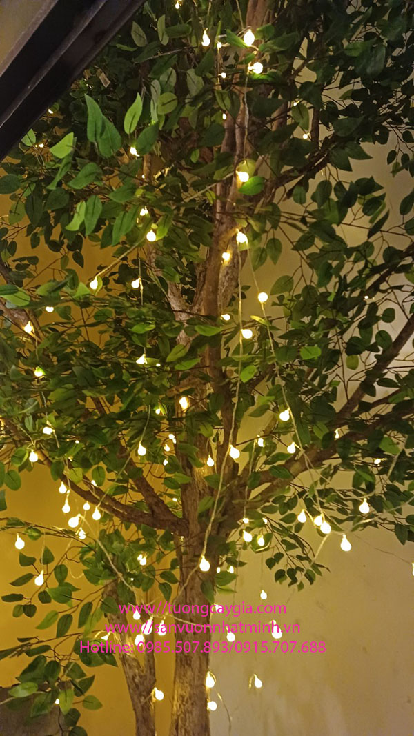 Làm xong cây được chăng đèn led ánh sáng vàng nhìn cây si càng trở nên lung linh hơn