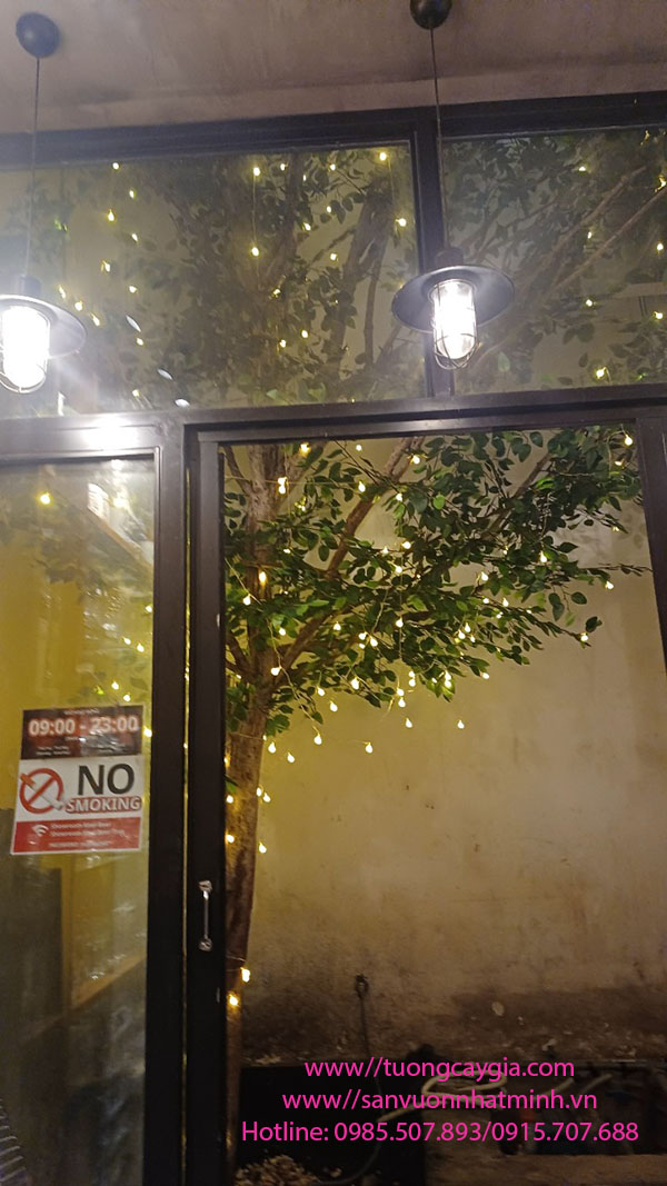 Cây cao 6m tỏa đều các hướng trong khe thoáng giếng trời của nhà hàng