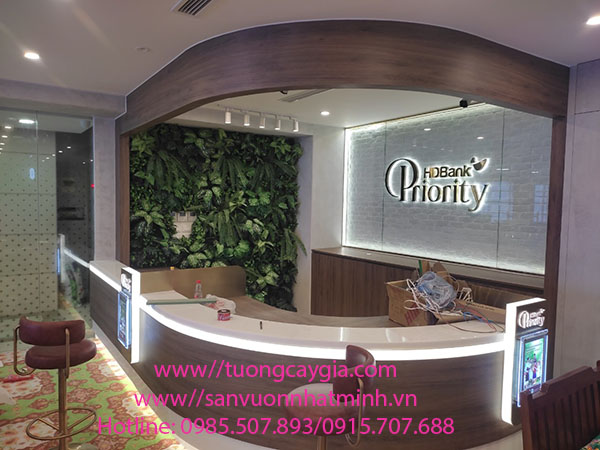 Tường cây giả Nhật Minh đã kiến tạo hàng nghìn vách tường cây với nhiều màu sắc tông lá khác nhau. Mỗi vách tường cây là một sự khác biệt nhưng tông chủ đạo vẫn là màu xanh pha điểm chút sắc tím hoặc xanh non, vài bông hoa để tạo sự nhấn nhá. Tại ngân hàng HDBank số 32 Trần Hưng Đạo, Hoàn Kiếm, Hà Nội, các mảng cây xanh đã tạo nên hiệu ứng cho không gian làm việc các cán bộ ngân hàng.