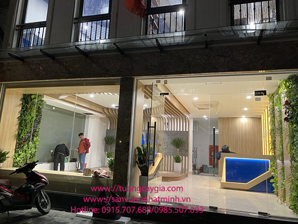 Vách tường cây xanh tươi ngay phía trái sảnh văn phòng