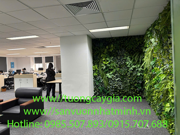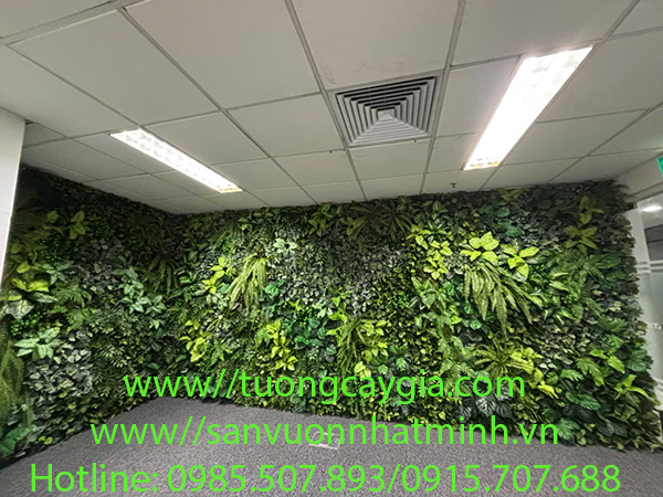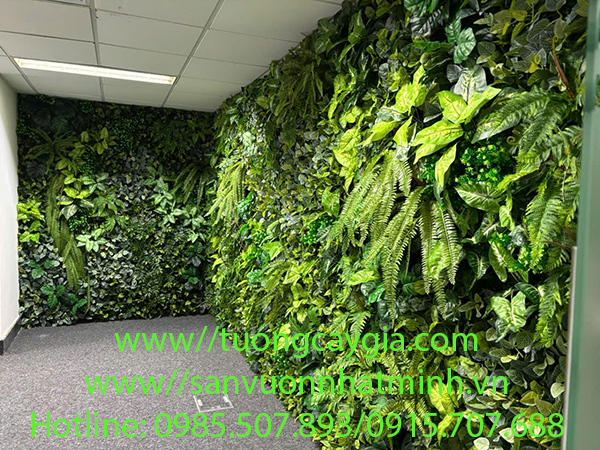 Dưới đây là vách tường cây nhân tạo vừa được Nhật Minh decor với thời gian là 8h cho mảng tường 17.5m2