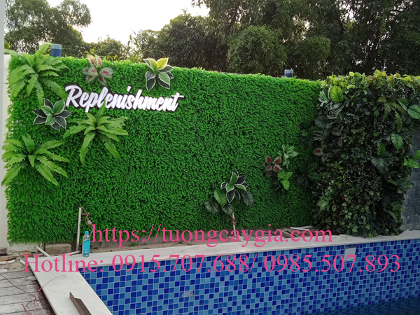 Tường cây lá giả mic nhiều lớp giống tự nhiên