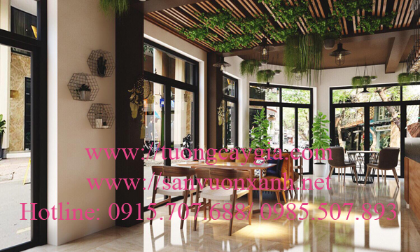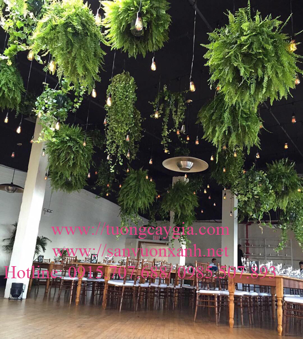 Tường cây dương sỉ tại quán cà phê