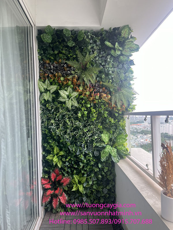 Dưới đây là mẫu tường cây hỗn hợp trên mảng tường ngoài ban công chung cư mà chúng tôi vừa hoàn thiện: