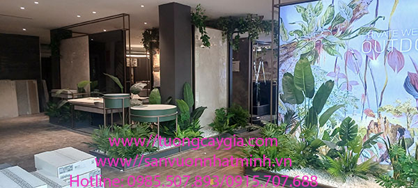 Nhật Minh là đơn vị thi công, decor hoa lá, cây cỏ, tiểu cảnh, bục cây, chậu cây theo yêu cầu của từng công trình. Mỗi sản phẩm hoàn thiện là một hình dáng, bố cục khác nhau tạo nên một nét riêng mới cho không gian. Cây lá thiên nhiên luôn tạo ra nguồn năng lượng tích cực cho con người bởi vậy việc decor cho một Showroom chuyên kinh doanh thiết bị vệ sinh, gạch, đá cao cấp đến từ thương hiệu nước Ý thì không thể thiếu những bồn cây, chậu cây, góc tiểu cảnh,.. những hình ảnh dưới đây được chúng tôi ghi lại để Quý khách có thể lựa chọn cho mình mẫu ưng ý nhất: