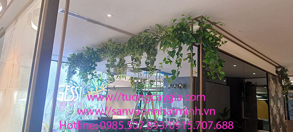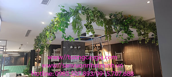 Decor các khóm dây rủ từ trần thả leo xuống như trầu bà, vạn niên thanh, nguyệt quế,...