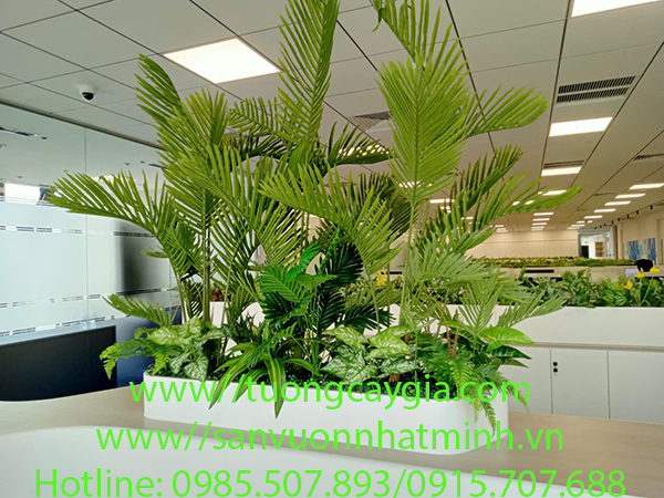 Bục cây xanh nhân tạo được khách hàng lựa chọn ngày càng nhiều bởi vẻ đẹp và sự tiện lợi không tốn công chăm sóc, giá thành thấp hơn 2-3 lần bồn cây thật. Và hơn nữa các cây thật rất khó sống trong môi trường thiếu sáng và không khí.
