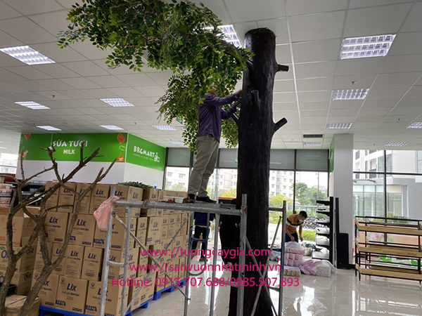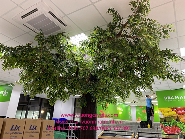 Cây si xanh đã trở nên quen thuộc với người dân Việt Nam, cây si là dòng họ cây sống lâu năm, toả bóng mát xanh tươi quanh năm. Với sự sáng tạo và bàn tay con người chúng tôi đã tạo dựng thân cây bằng chiếc cột khô cứng của toà nhà chung cư kết hợp với việc tạo nhánh cành từ cành cây tự nhiên và gắn kết lá nhựa xanh để tạo nên một cây si xanh cổ thụ hoàn chỉnh.