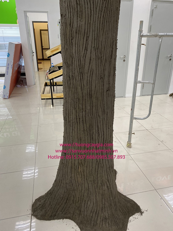 Đã xong công đoạn tạo thân, sơn màu nâu sẫm cho thân cây