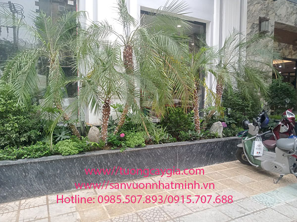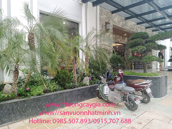 Các tiểu cảnh bao quanh được ven khách sạn được chúng tôi hoàn thiện trồng những khóm Chà Là xanh mướt