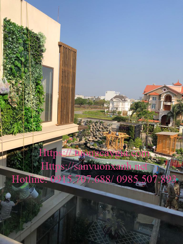 Tường cây giả ngoài trời được lắp đặt tại nhà chị Dương đường số 16, Phan Bá Vành, Quận 2