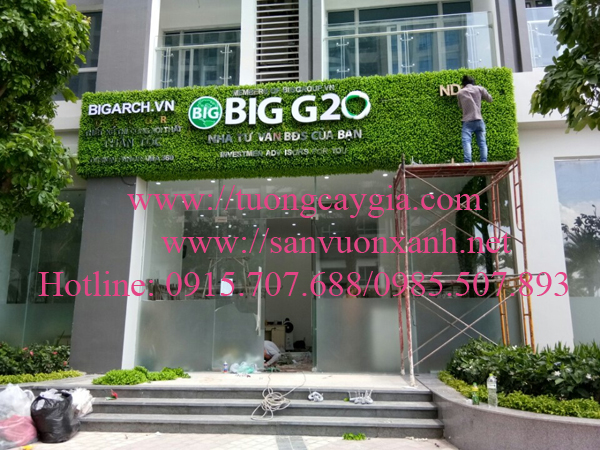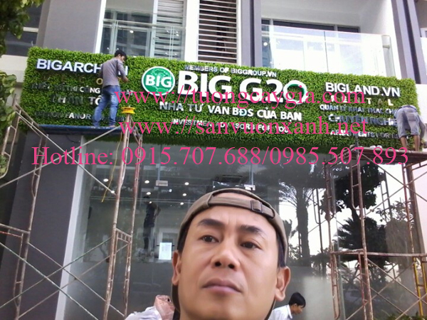Thi công tường cỏ nhựa mặt tiền công ty Big G20, Bình Thạnh, Tp HCM