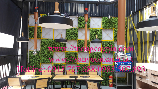 Nhà hàng ăn uống thường có không gian rộng lớn, việc trang trí một bức tường cỏ cây hoa lá là việc Chủ nhà hàng nên đầu tư vì tường cỏ giả không chỉ mang lại vẻ đẹp, thư thái, xanh tươi của thiên nhiên cỏ cây mà chúng còn điểm nhấn để khách hàng check in, chụp ảnh.