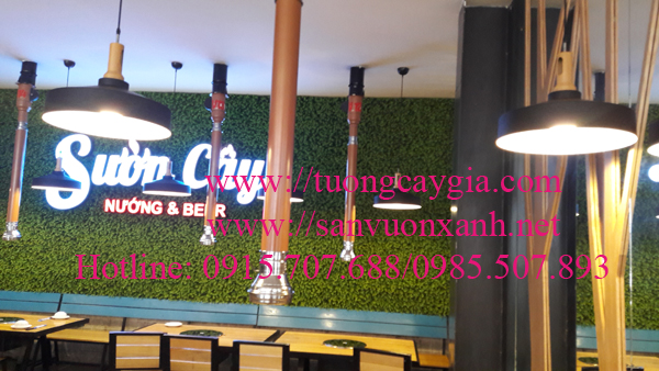 Thi công tường cỏ nhựa nhà hàng Sườn cây nướng và bear số 146 Phố Vọng - Đống Đa - Hà Nội