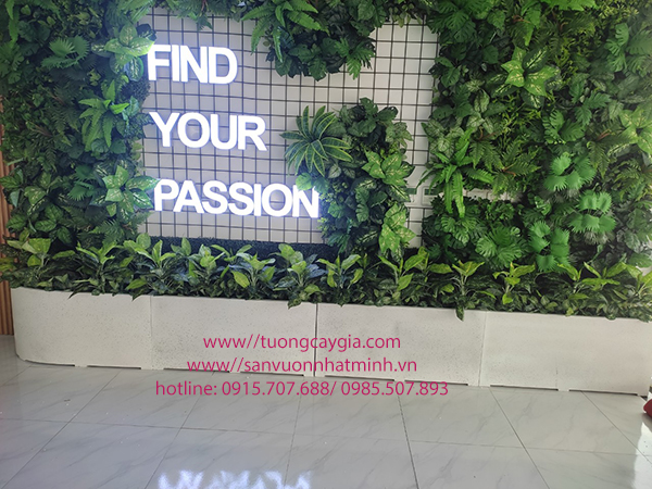 Một khu vực khác cũng trang trí vách cây giả nhưng tạo điểm nhấn có chữ trắng
