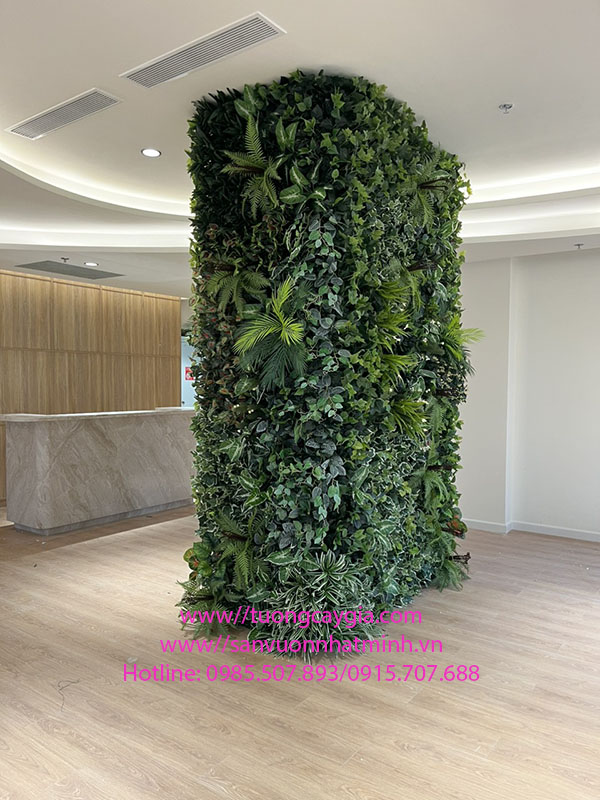 Trang trí cột tòa nhà bằng vách cây lá nhân tạo