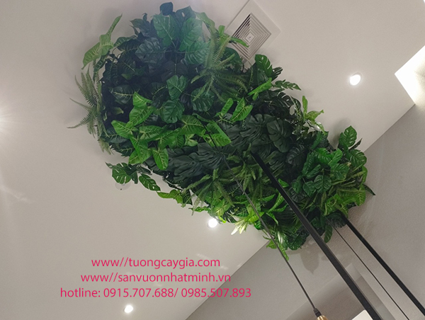 Trần nhà cũng tạo một vách cây xanh cắm ngược