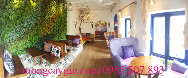 Một vách tường lá khác tại tầng 3 - phong cách thiết kế nhà hàng tân cổ điển