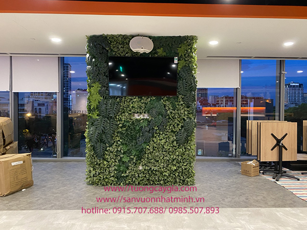 Nhật Minh là đơn vị thi công chuyên nghiệp tường cây giả, vách tường cây trang trí, vách tường cỏ, cây khô trang trí, bục cây lá,.. thật đến 99%. Với nhiều mẫu thiết kế sáng tạo, phù hợp, tô đẹp thêm không gian nhà bạn. Tường cây văn phòng đang ngày càng phổ biến vì sự tiện ích và giá thành hợp lý hơn rất nhiều so với vách tường cây thật. Ngay sau khi hoàn thiện vách tường được thay một màu áo mới xanh tươi, đẹp ngay lập tức còn cây thật phải từ 2-3 tháng cây mới sinh trưởng tươi tốt nhưng thiếu sáng cây sẽ khó sống và luôn trong tình trạng cây còi cọc, lá vàng héo úa, chính điều này cây giả ra đời là một sự lựa chọn thay thế hoàn toàn hợp lý nhất.