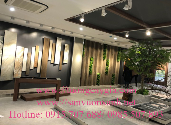 Cỏ cây hoa lá nhân tạo ngày càng được đưa vào trang trí tại các nhà hàng, showroom, trung tâm thương mại, sàn giao dịch bất động sản, trường học, ...