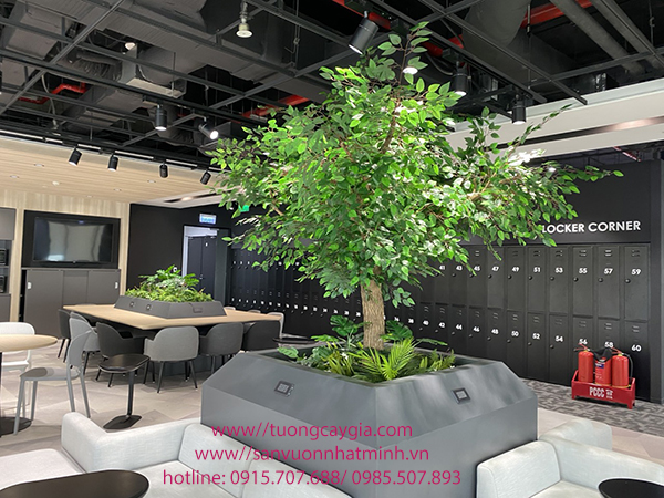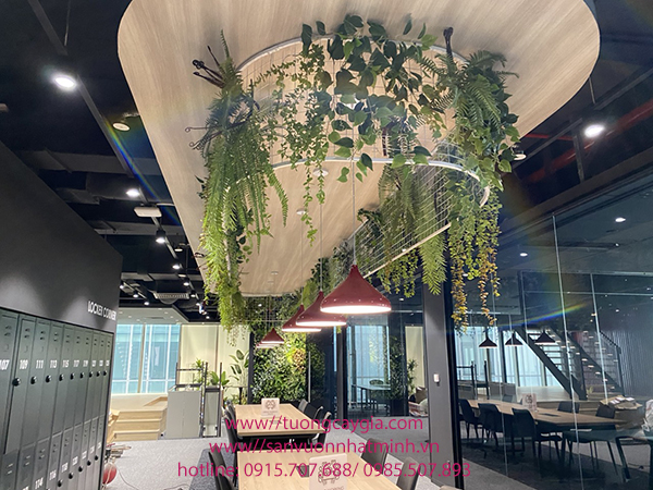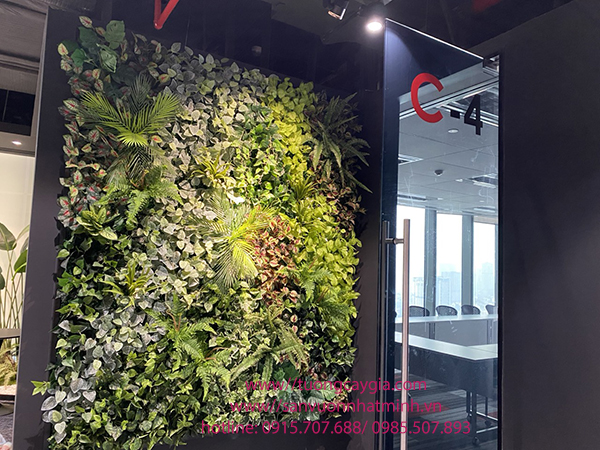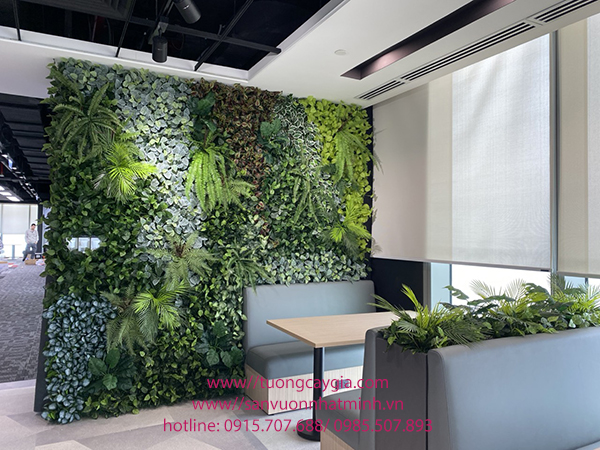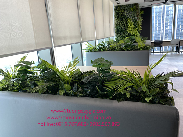 Vách tường cây nhân tạo ngăn khu vực tiếp đón khách
