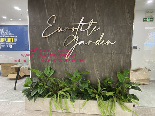 Chúng tôi chuyên cung cấp và thi công vách tường cây, vách tường cỏ giả, vườn đứng, vườn treo bằng lá, hoa, cây giả lụa với chất liệu cao cấp, độ chống bụi bẩn cao. Vườn đứng cây lá giả là vườn sử dụng nhiều loại lá cây khác nhau kết hợp thành một bức tranh sinh động nhiều màu sắc, vừa mang tính thẩm mỹ, tự nhiên và tràn đầy sự tươi mát cho khung cảnh nội - ngoại thất. Với ưu điểm của cây giả giúp bạn không lo mất công chăm sóc và dọn dẹp mà vẫn giữ được độ tự nhiên nhất ( giống thật tới 99%) Trang trí nội thất và ngoại thất cho các: - Hộ gia đình. - Văn phòng, cơ quan. - Quán bar, coffee, cửa hàng, show room,... - Trung tâm thương mại, tiệc cưới, sự kiện,…. Với đa dạng mẫu mã và giá thành tốt nhất. - Chúng tôi có chính sách bảo hành trọn đời sản phẩm, miễn phí công thiết kế, lắp đặt, vận chuyển.