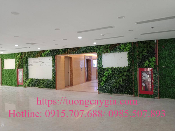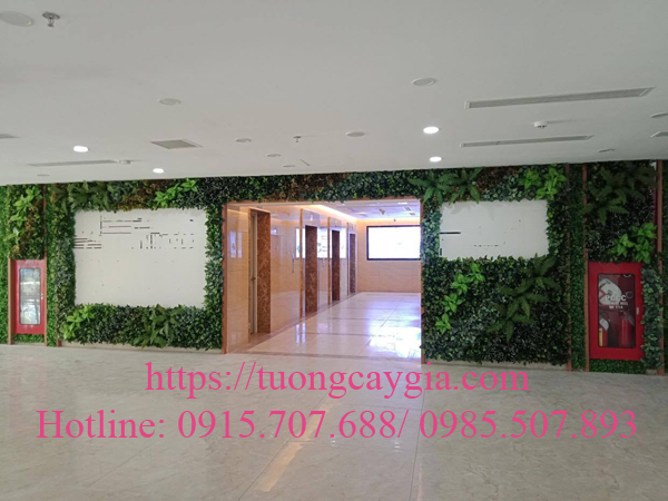 Tường cây giả xanh mát tại sảnh tòa nhà - đơn vị Nhật Minh thực hiện