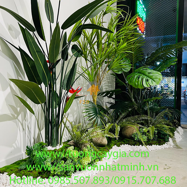 Trang trí tiểu cảnh bằng cây lá nhân tạo là một giải pháp phổ biến giúp không gian xanh mát mà không tốn nhiều công chăm sóc. Dưới đây là một số ý tưởng và lưu ý khi sử dụng cây lá nhân tạo để trang trí tiểu cảnh: