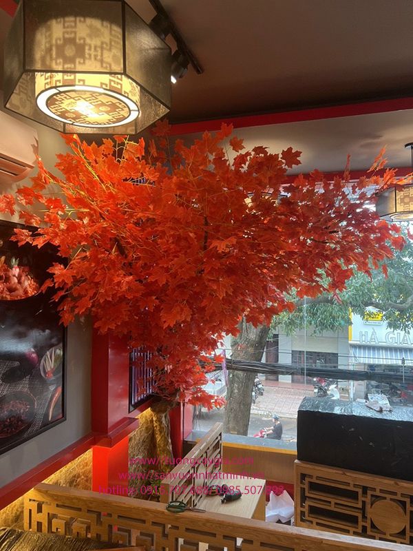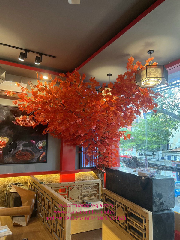 Trang trí cây lá phong đỏ cho nhà hàng ẩm thực