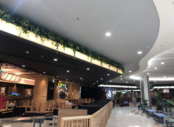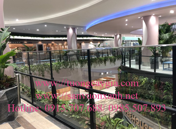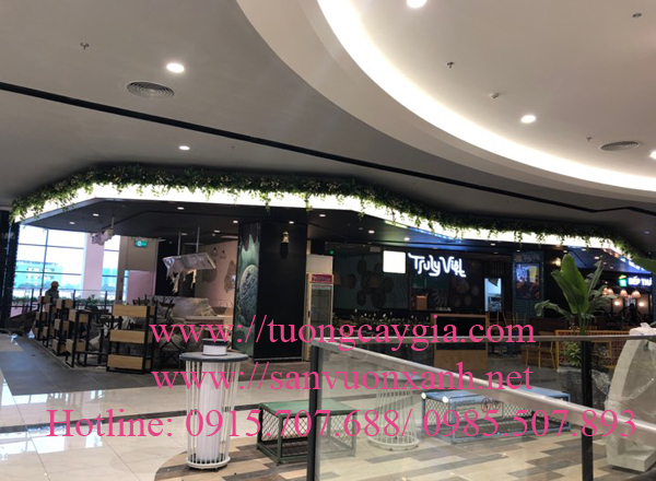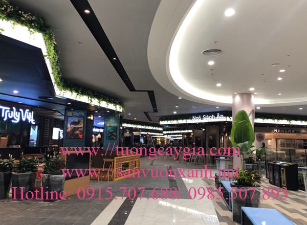 Tường cây giả Nhật Minh đã hoàn thành toàn hệ thống cây giả trên trần nhà khu hành lang các nhà hàng ăn tại tầng 1, tầng 2 - Trung tâm thương mại Aeon mall Hà Đông - Hà Nội.