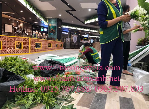 Chúng tôi hoàn thành các hạng mục cây lá giả trong thời gian gấp rút, làm việc tăng ca cả ngày và đêm để kịp tiến độ khai trương dự án. Dưới đây là một số sản phẩm được chúng tôi ghi lại.