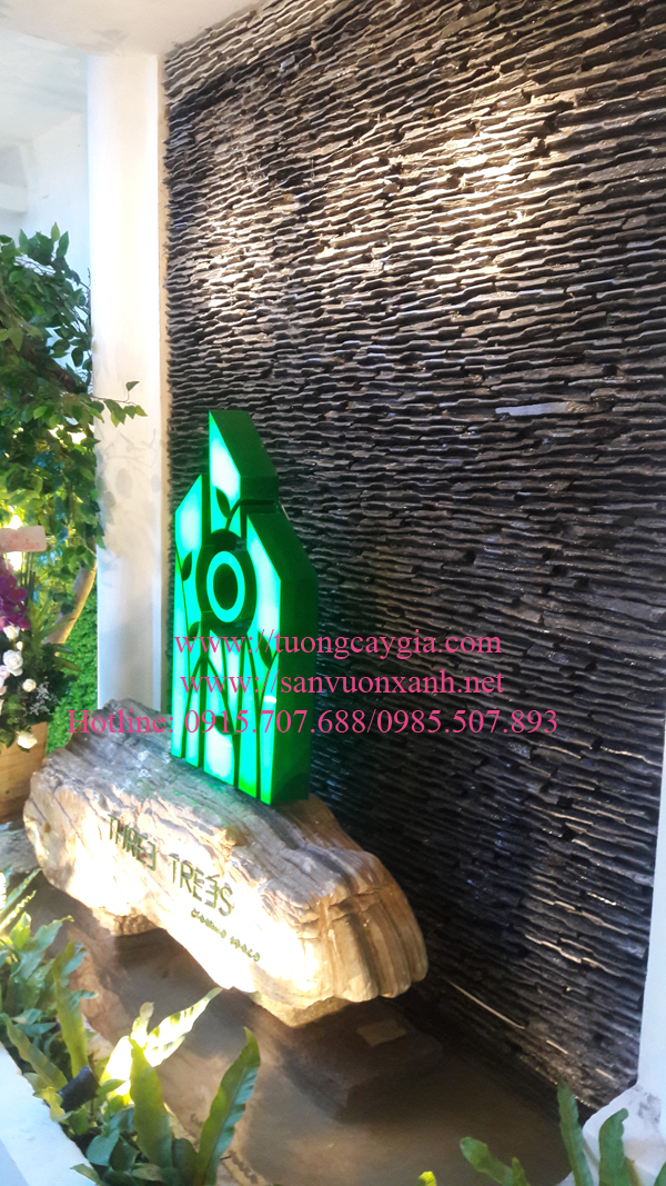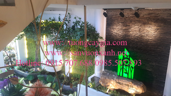 Hàng năm tường cây giả Nhật Minh luôn nhận được nhiều đơn hàng với khối lượng lớn lên đến vài trăm triệu đồng trong đó có nhiều hạng mục trang trí khác nhau như trang trí cảnh quan tại nhà hàng Three trees số 231 đường Điện Biên Phủ, phường 6, quận 3, Tp Hồ Chí Minh