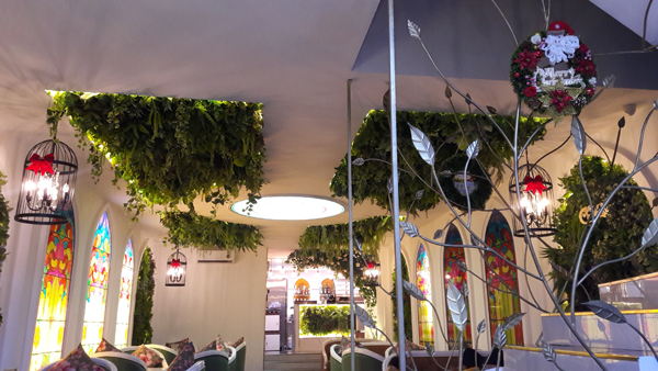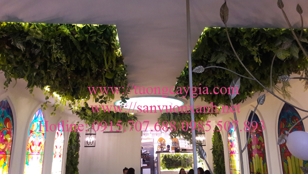 Trần nhà tạo nhiều mảng cây rủ trông rất vui mắt ví như cây mọc ngược