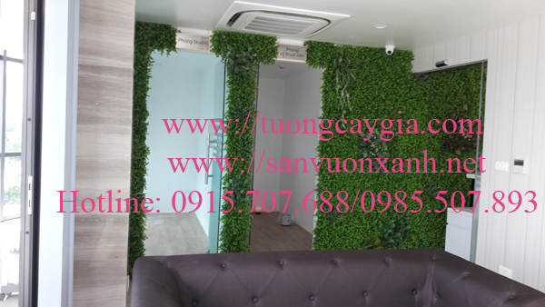 Trang trí vách tường cỏ điểm lá tại thẩm mỹ viện Hoàng Tuấn, ngõ 78 đường Hoàng Quốc Việt, Cầu Giấy, Hà Nội