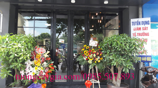 Mặt tiền nhà hàng đặt hai chậu cây Lộc Vừng