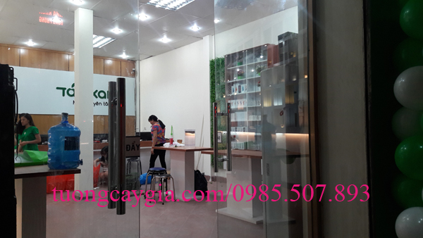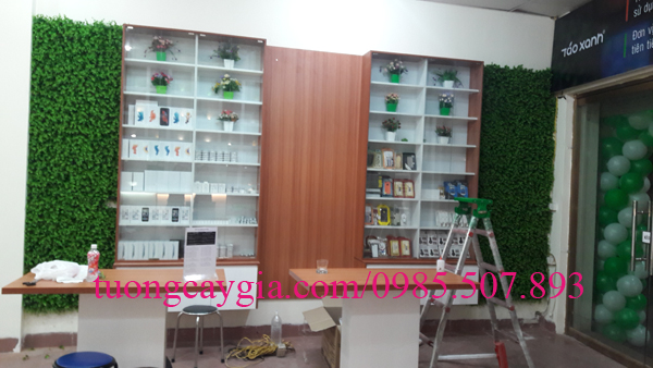 Tường cỏ xanh tại cửa hàng bán điện thoại Táo xanh trên phố Hồ Tùng Mậu
