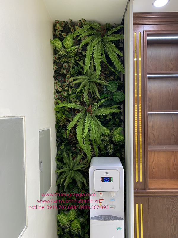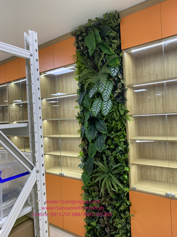 Thi công tường cây lá hỗn hợp giá tốt nhất tại Hà Nội, Tp Hồ Chí Minh, các tỉnh lân cận với chất lượng, mẫu mã phong phú, uy tín từ khâu chọn cây đến kĩ thuật cắt tỉa cắm cành lá. Đến với Nhật Minh quý khách không phải bận tâm về chất lượng và giá cả bởi chúng tôi là doanh nghiệp có đội thợ thi công chuyên nghiệp, nhiều năm kinh nghiệm trong việc trang trí hoa lá nhân tạo. Hàng năm chúng tôi thiết kế, thi công hàng nghìn sản phẩm lớn nhỏ với nhiều mẫu mà khác nhau mà dưới đây là vách tường cây văn phòng xinh xắn có tại Công ty chuyên về thiết bị máy khâu công nghiệp tại đất dịch vụ Dương Nội - Hà Đông
